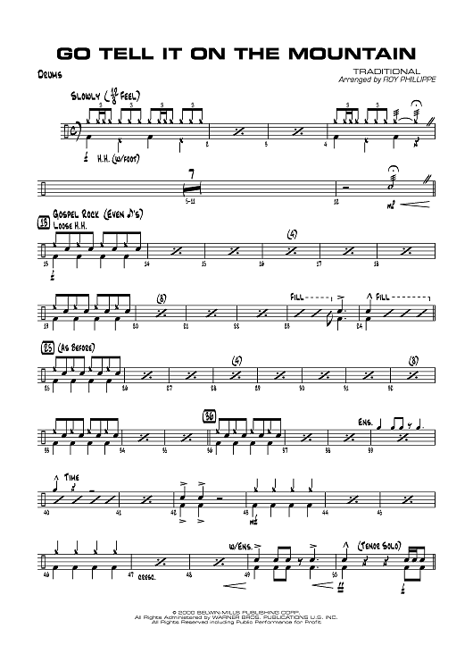 Digital Sheet Music for Go Tell It On the Mountain - Drums by Traditional, Roy Phillippe scored for Jazz Ensemble; id:359595
