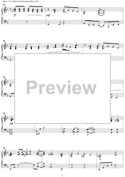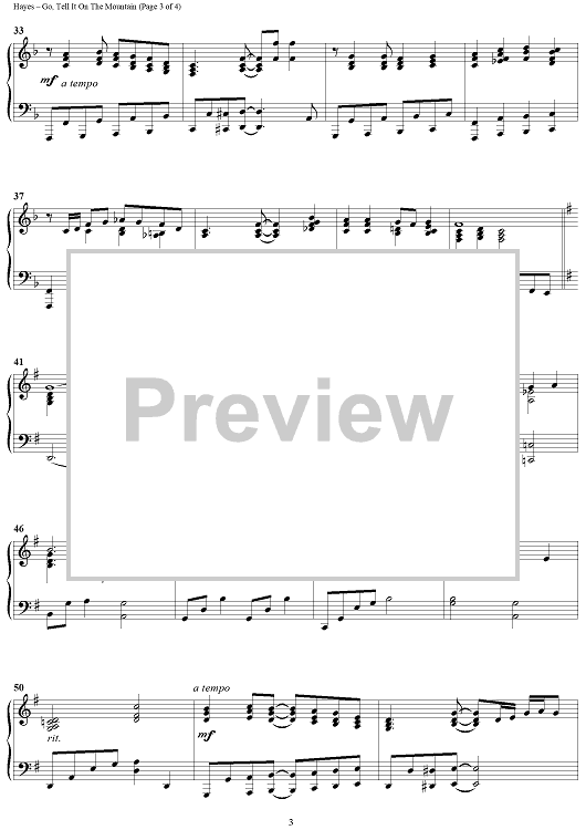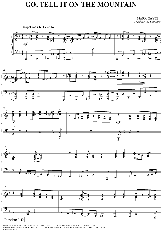 Digital Sheet Music for Go, Tell It on the Mountain by Mark Hayes, Traditional Spiritual scored for Piano Solo; id:444507