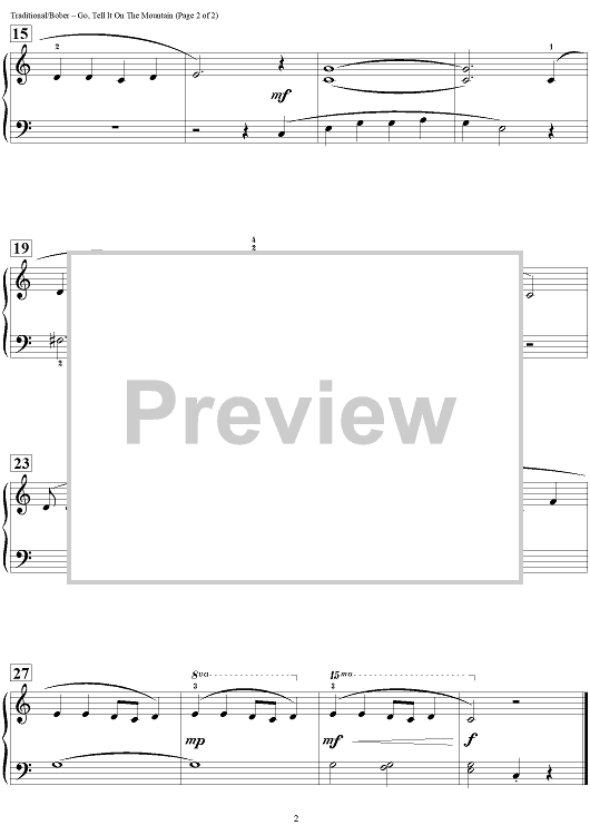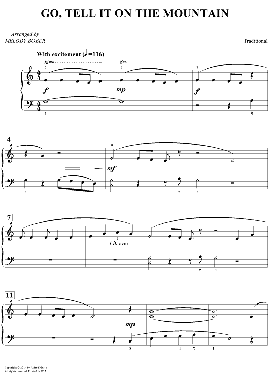 Digital Sheet Music for Go, Tell It On The Mountain by Traditional, Melody Bober scored for Piano; id:459909