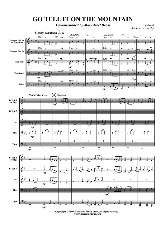 Digital Sheet Music for Go Tell It On The Mountain - Score by Traditional, Lewis J. Buckley scored for Brass Quintet; id:409851