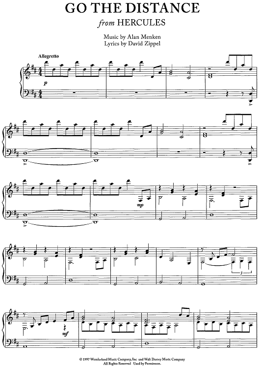Digital Sheet Music for Go The Distance - from Hercules by David Zippel, Alan Menken scored for Piano Solo; id:468913