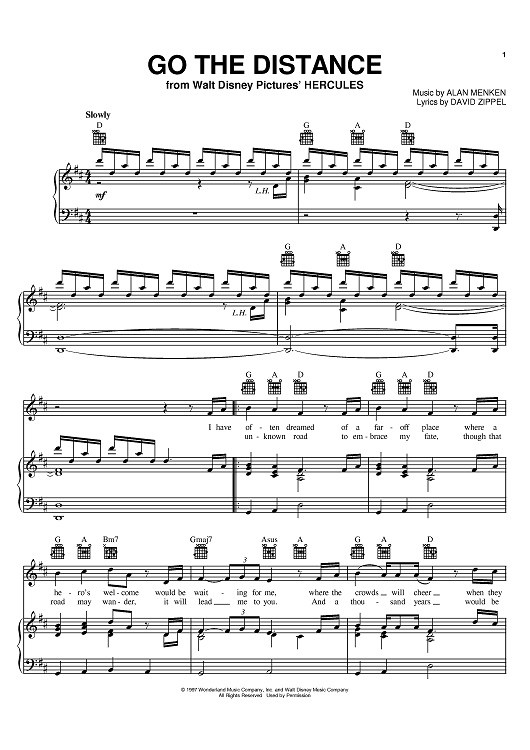 Digital Sheet Music for Go The Distance by Michael Bolton, David Zippel, Alan Menken scored for Piano/Vocal/Chords; id:367996