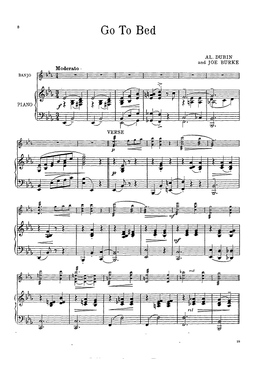 Digital Sheet Music for Go To Bed by Al Dubin, George J. Trinkaus, Joe Burke scored for Banjo/Piano; id:418715