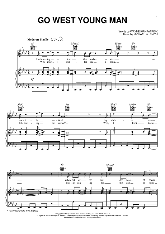 Digital Sheet Music for Go West Young Man by Michael W. Smith, Wayne Kirkpatrick scored for Piano/Vocal/Chords; id:395082