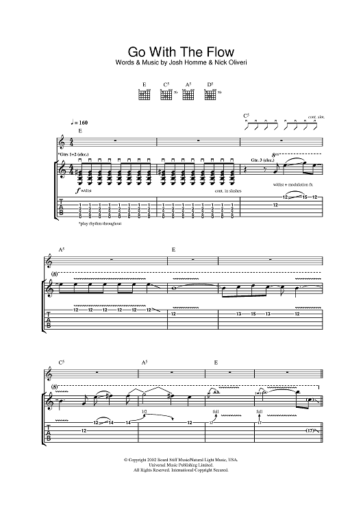 Digital Sheet Music for Go With The Flow by Josh Homme, Nick Oliveri, Queens of the Stone Age scored for Guitar Tab; id:381922