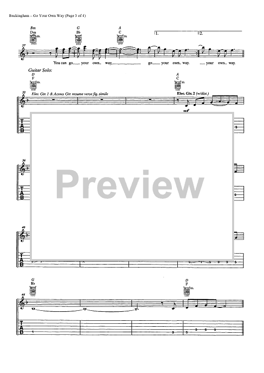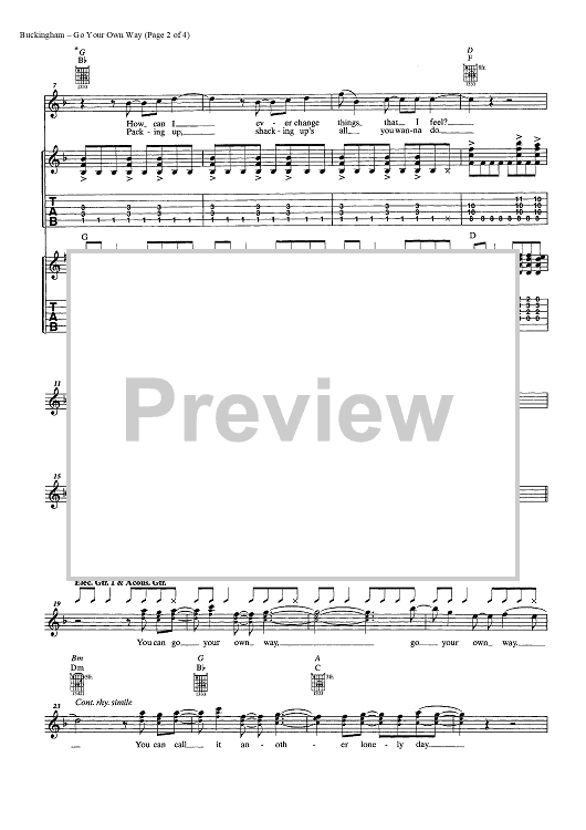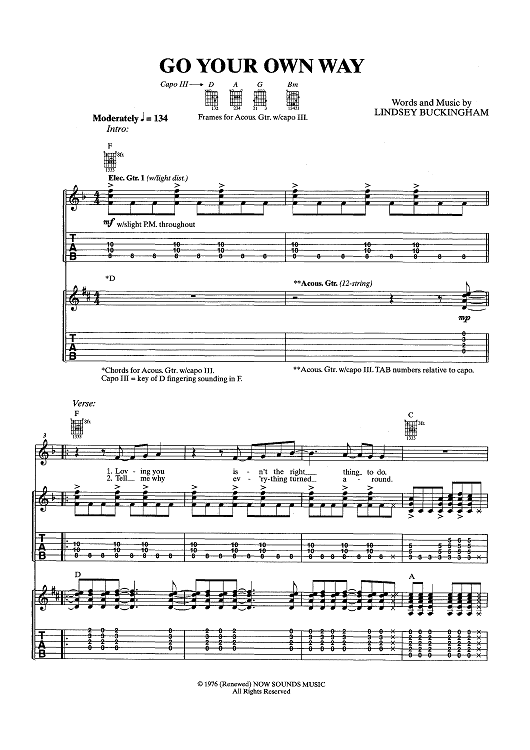 Digital Sheet Music for Go Your Own Way by Lindsey Buckingham, Fleetwood Mac scored for Easy Guitar Tab/Vocal/Chords; id:449134