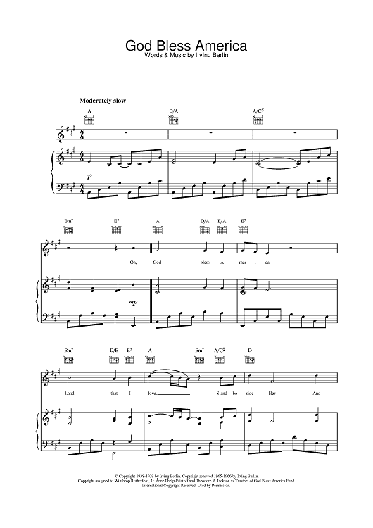 Digital Sheet Music for God Bless America by Irving Berlin, Celine Dion scored for Piano/Vocal/Chords; id:377446
