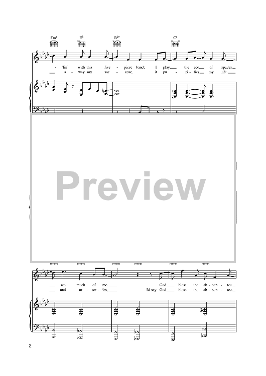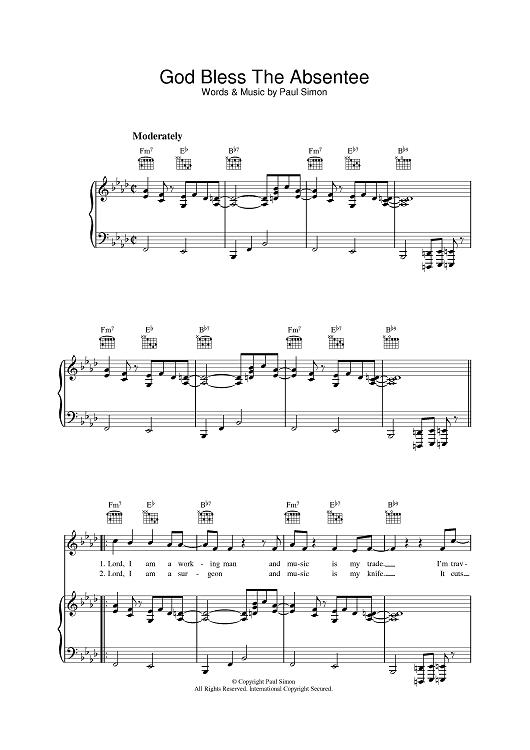 Digital Sheet Music for God Bless The Absentee by Paul Simon scored for Piano/Vocal/Chords; id:390736