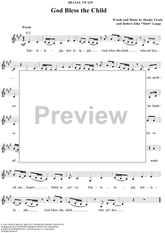 Digital Sheet Music for God Bless the Child by Shania Twain, Robert Lange scored for Solo a cappella; id:110857