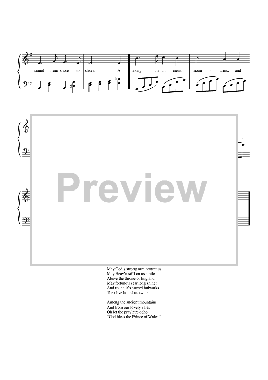 Digital Sheet Music for God Bless The Prince Of Wales by scored for Piano/Vocal/Chords; id:377555