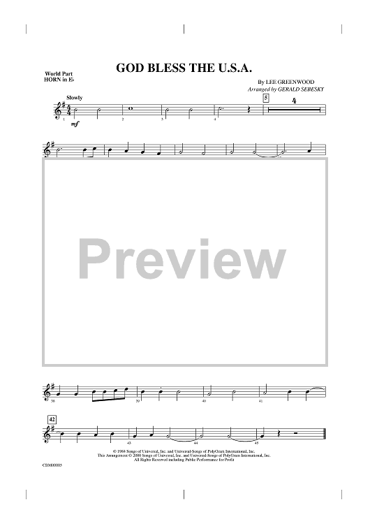 Digital Sheet Music for God Bless the U.S.A. - Horn in E-flat by Gerald Sebesky, Lee Greenwood scored for Concert Band; id:310358