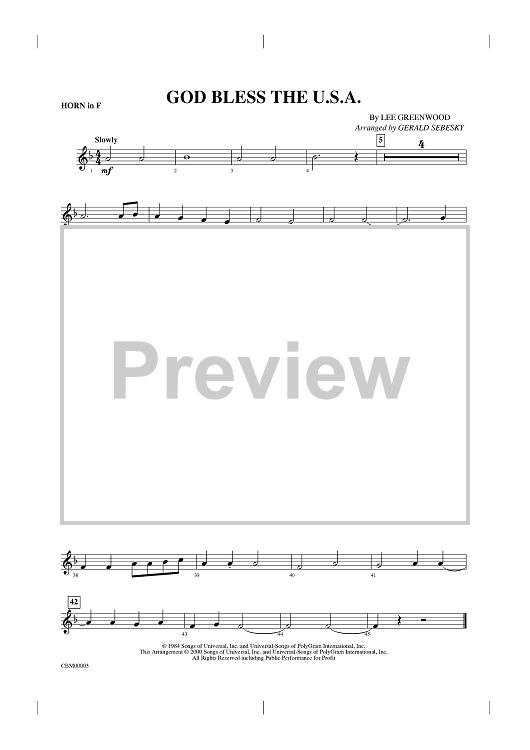 Digital Sheet Music for God Bless the U.S.A. - Horn in F by Gerald Sebesky, Lee Greenwood scored for Concert Band; id:310357