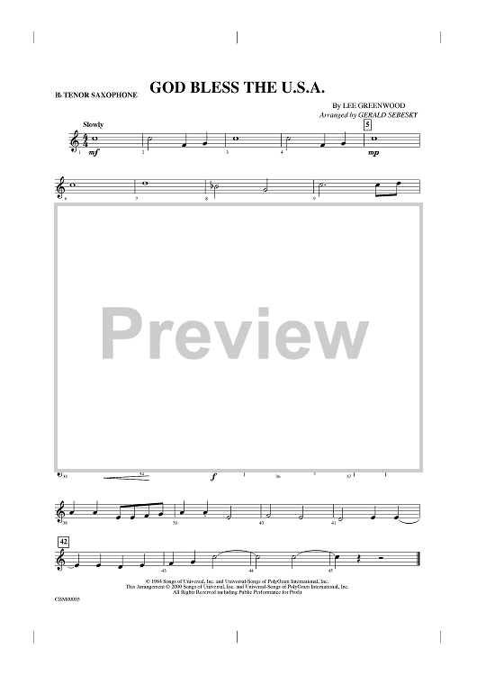 "God Bless the U.S.A. - Tenor Saxophone" Sheet Music by Lee Greenwood
