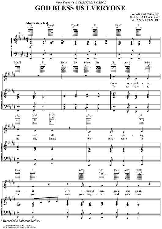 Digital Sheet Music for God Bless Us Everyone by Glen Ballard, Andrea Bocelli scored for Piano/Vocal/Chords; id:406686