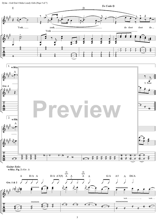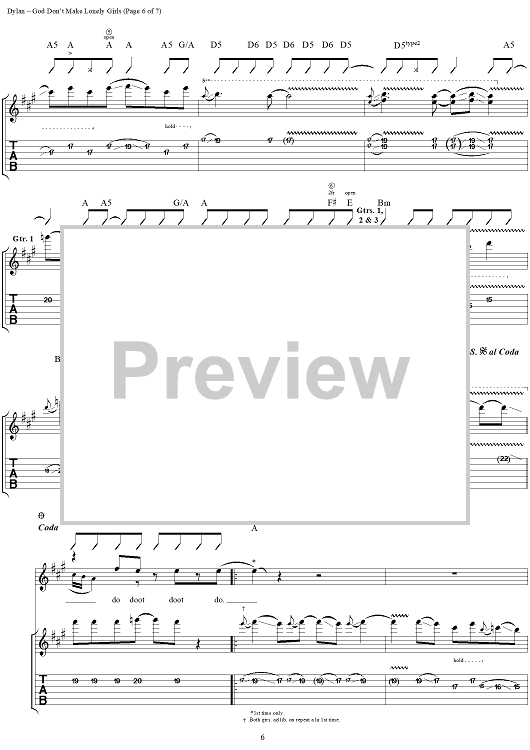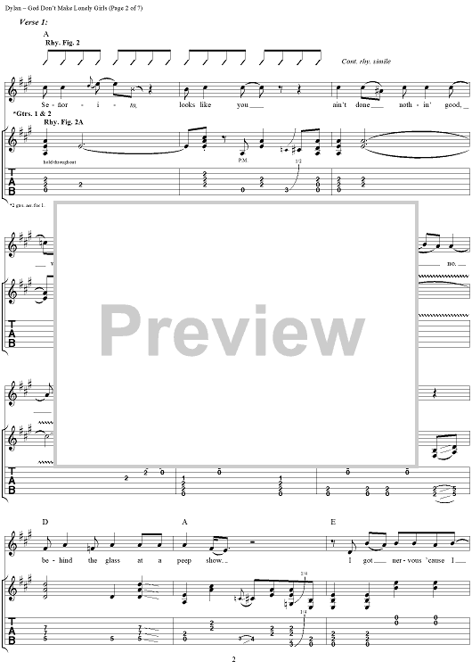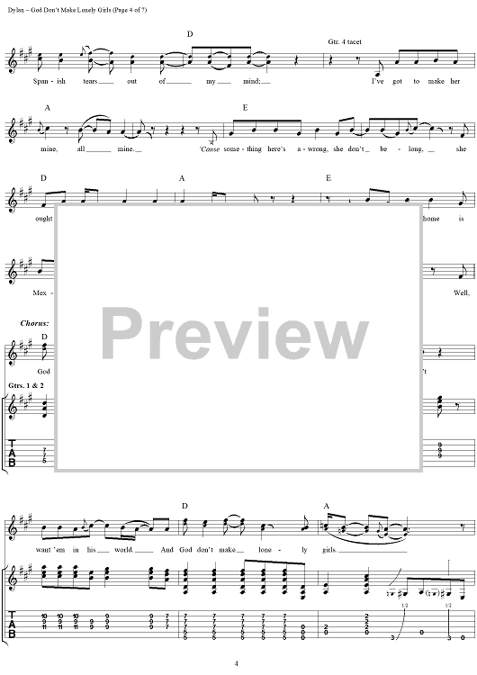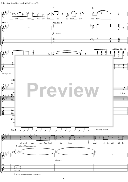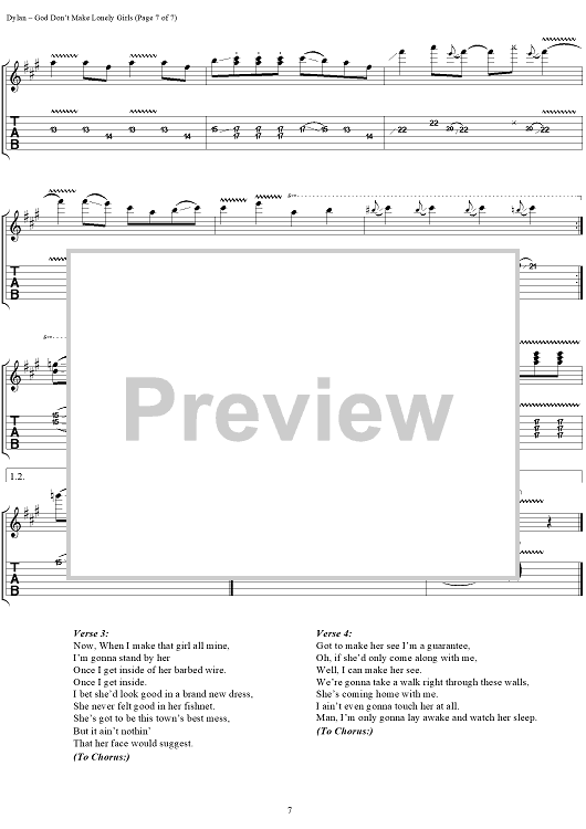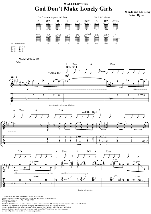 Digital Sheet Music for God Don't Make Lonely Girls by Jakob Dylan, The Wallflowers scored for Guitar Tab/Vocal; id:110797