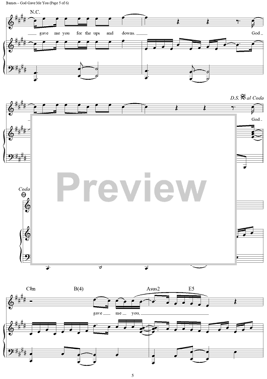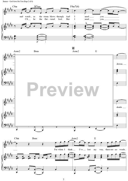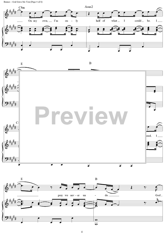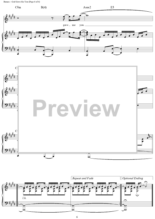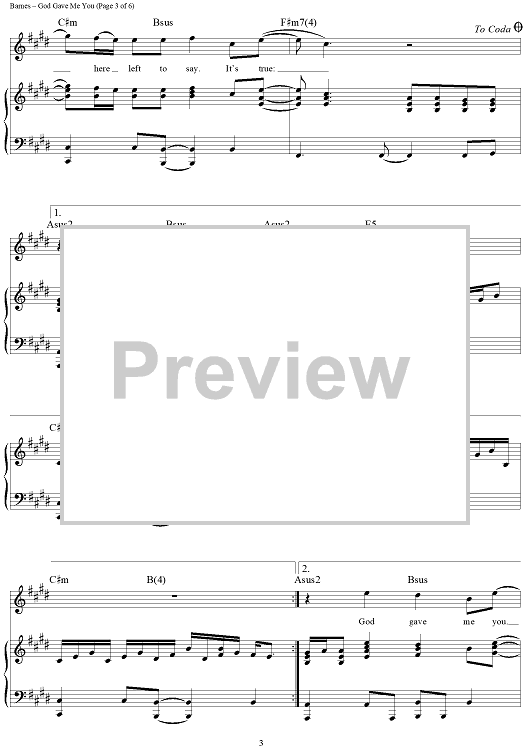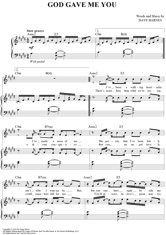 Digital Sheet Music for God Gave Me You by Blake Shelton, Dave Barnes scored for Piano/Vocal/Chords; id:437289