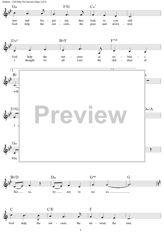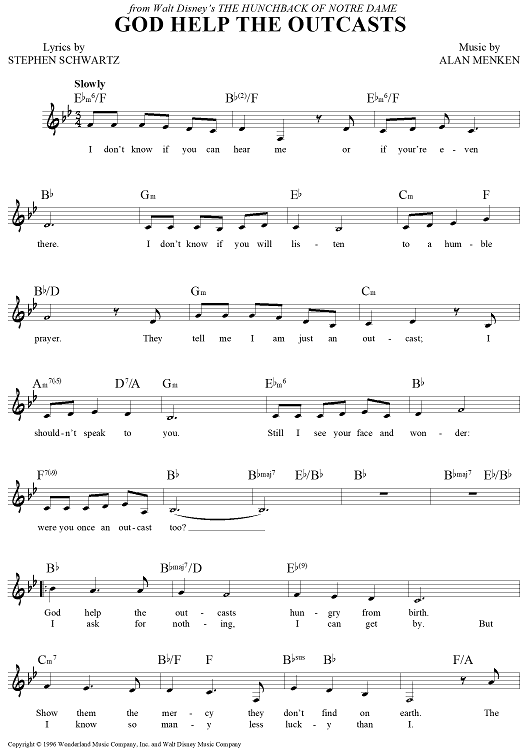 Digital Sheet Music for God Help the Outcasts by Alan Menken, Stephen Schwartz scored for Lead Sheet; id:441349