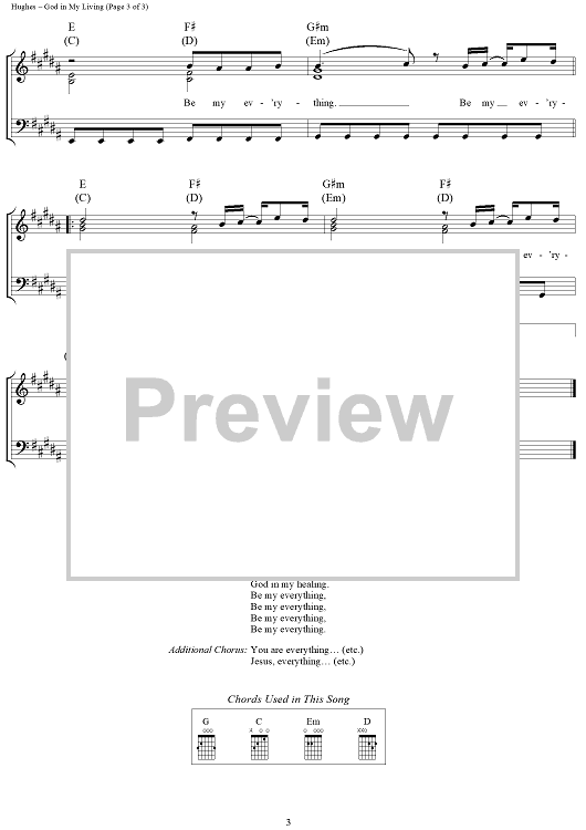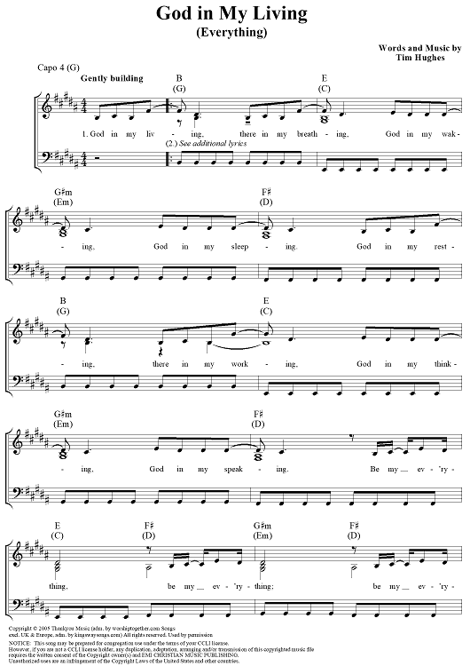 Digital Sheet Music for God In My Living (Everything) by Tim Hughes scored for Piano/Vocal/Chords; id:321320