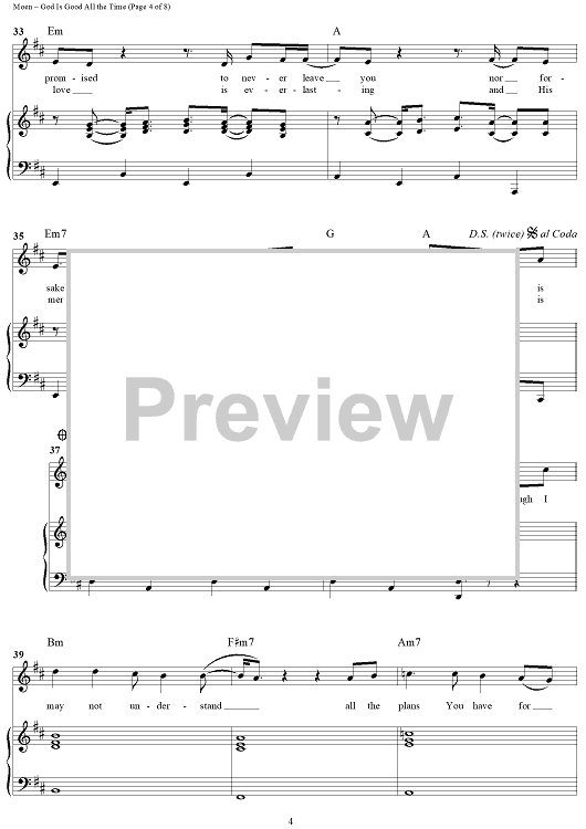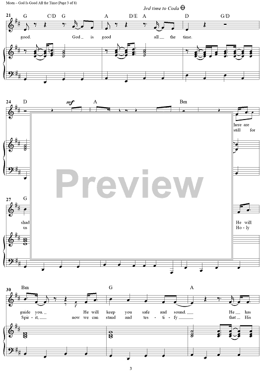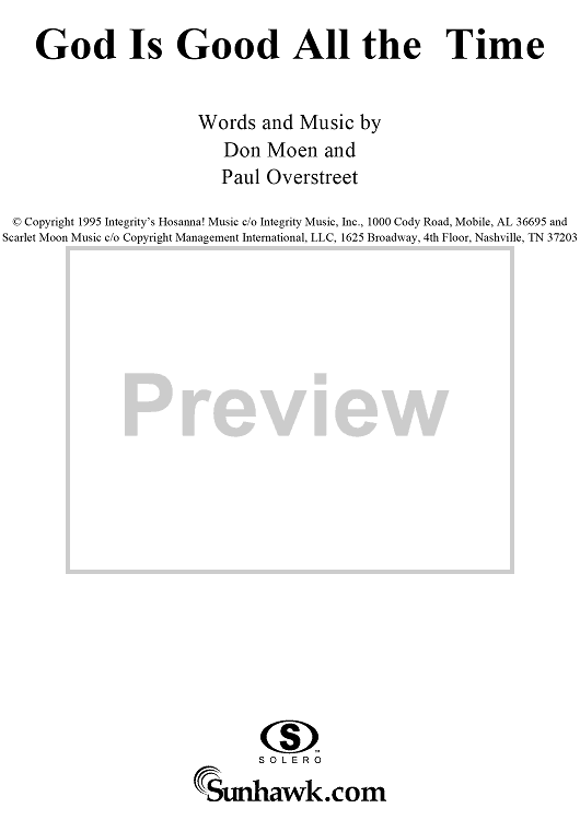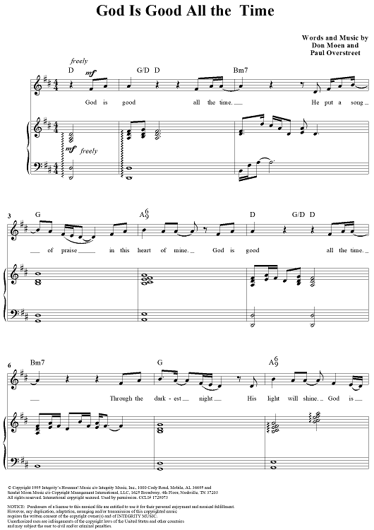 Digital Sheet Music for God is Good All the Time by Don Moen, Paul Overstreet scored for Piano/Vocal/Chords; id:307716
