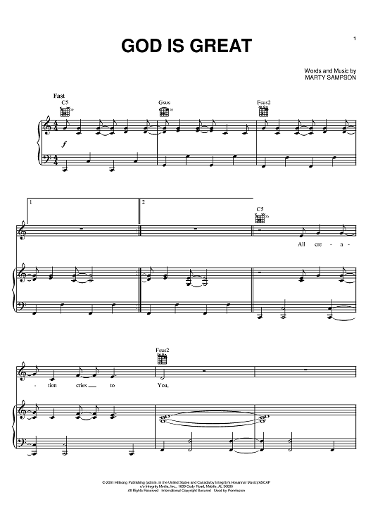 Digital Sheet Music for God Is Great by Marty Sampson scored for Piano/Vocal/Chords; id:374015