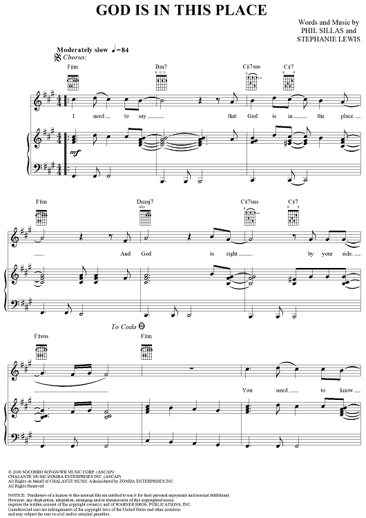 Digital Sheet Music for God Is in This Place by Stephanie Lewis, Plus One, Phil Sillas scored for Piano/Vocal/Chords; id:292064