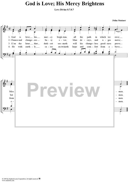 Digital Sheet Music for God is Love; His Mercy Brightens by John Stainer scored for Four-part Mixed Chorus; id:259192
