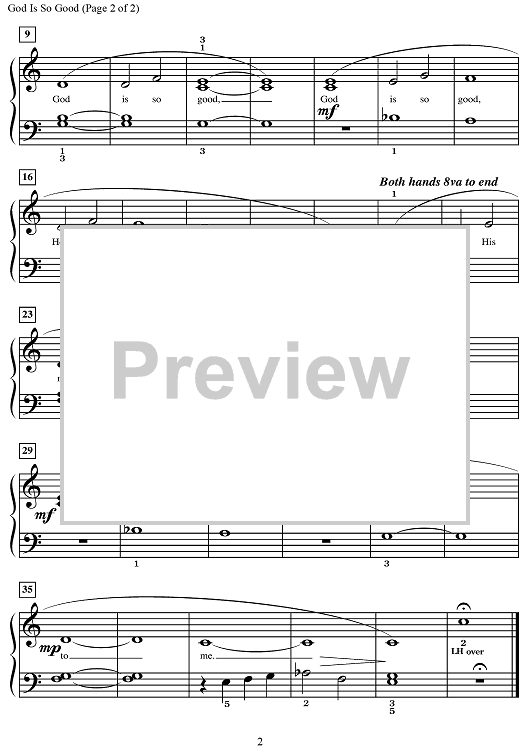 Digital Sheet Music for God Is So Good by Anonymous, Melody Bober scored for Piano Solo/opt.duet; id:501719