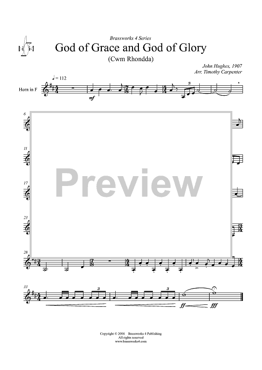 Digital Sheet Music for God of Grace and God of Glory - Horn in F by John Hughes, Timothy Carpenter scored for Brass Quintet; id:410420