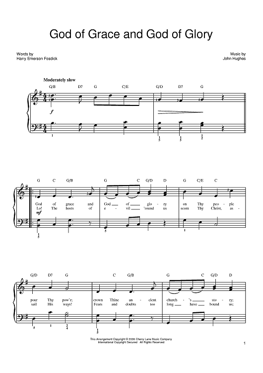Digital Sheet Music for God Of Grace And God Of Glory by Harry Emerson Fosdick, John Hughes scored for Easy Piano; id:390153