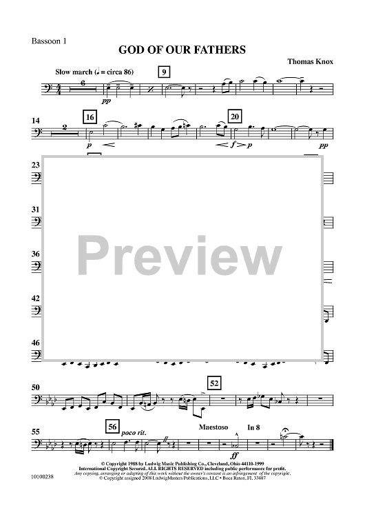 "God Of Our Fathers - Bassoon 1" Sheet Music by Thomas Knox