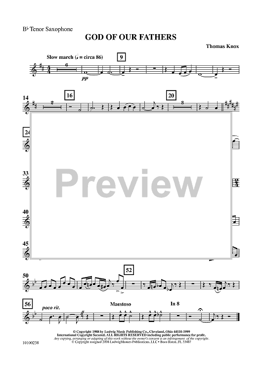 Digital Sheet Music for God Of Our Fathers - Bb Tenor Sax by Thomas Knox scored for Concert Band; id:459628