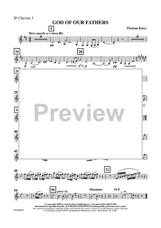 "God Of Our Fathers - Clarinet 3 in Bb" Sheet Music by Thomas Knox