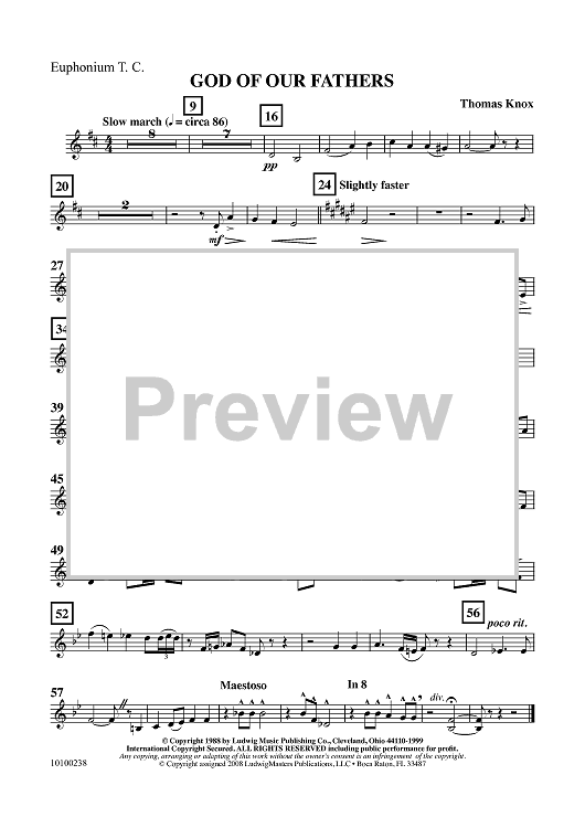 Digital Sheet Music for God Of Our Fathers - Euphonium TC by Thomas Knox scored for Concert Band; id:459643