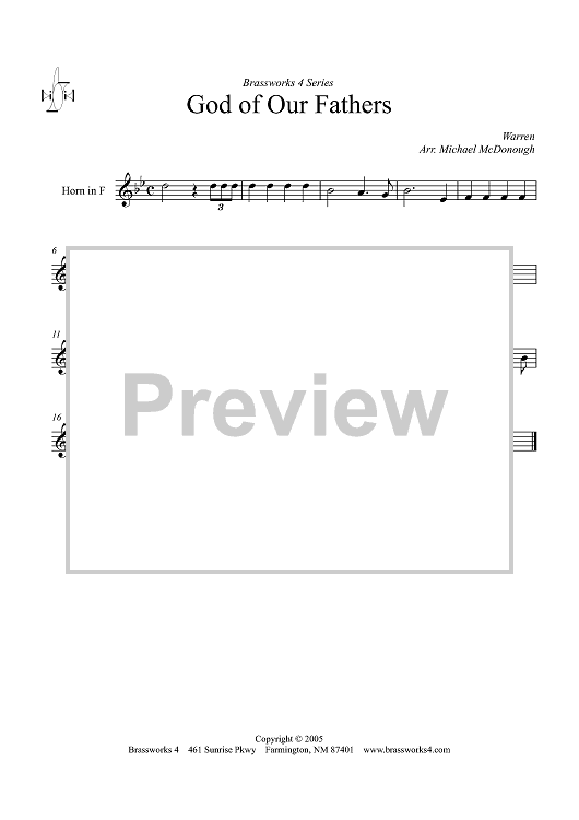 Digital Sheet Music for God of Our Fathers - Horn in F by Michael McDonough, George Warren scored for Trumpet/Horn/Trombone; id:357978