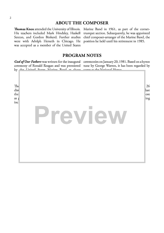 Digital Sheet Music for God Of Our Fathers - Score by Thomas Knox scored for Concert Band; id:459613