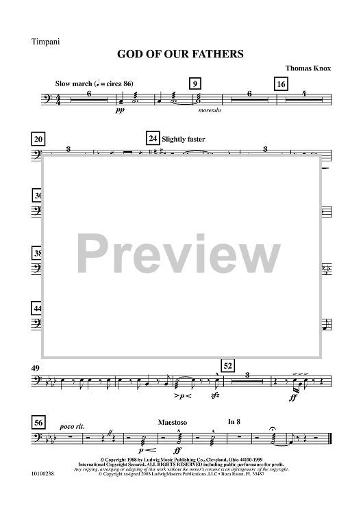 "God Of Our Fathers - Timpani" Sheet Music by Thomas Knox