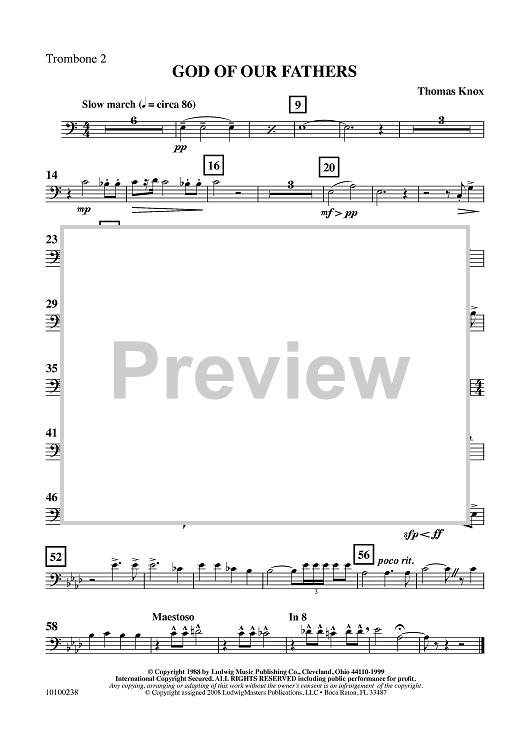Digital Sheet Music for God Of Our Fathers - Trombone 2 by Thomas Knox scored for Concert Band; id:459640