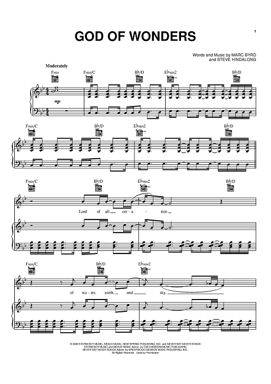 Digital Sheet Music for God Of Wonders by Third Day, Marc Byrd, Steve Hindalong scored for Piano/Vocal/Chords; id:372204