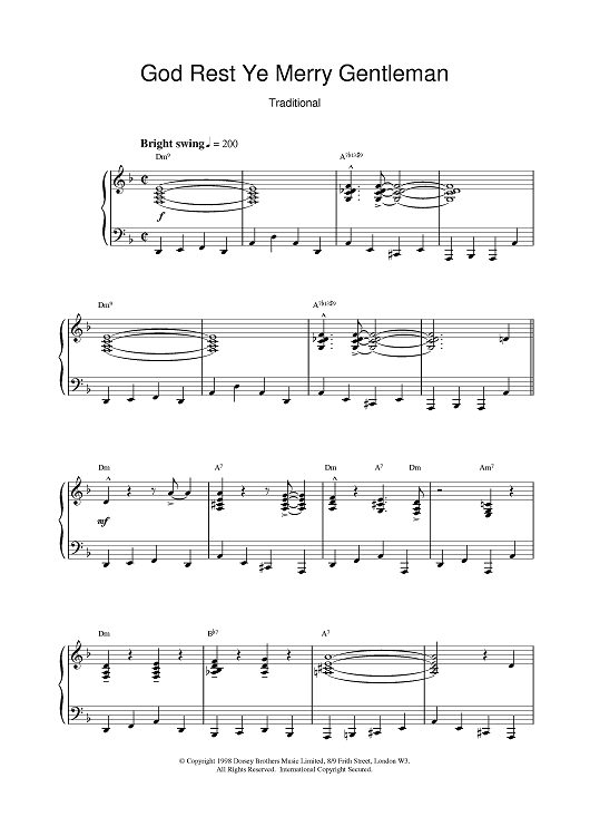 Digital Sheet Music for God Rest Ye Merry Gentleman by scored for Piano; id:378521