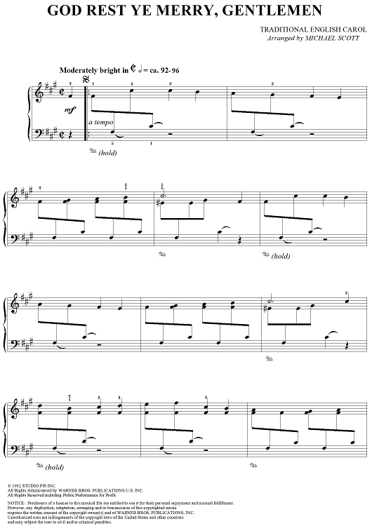 Digital Sheet Music for God Rest Ye Merry, Gentlemen by Michael Scott, Traditional scored for Piano Solo; id:261066