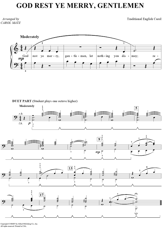 Digital Sheet Music for God Rest Ye Merry, Gentlemen by Traditional English Carol, Carol Matz scored for Piano; id:453608