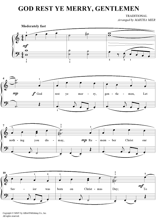Digital Sheet Music for God Rest Ye Merry, Gentlemen by Traditional, Martha Mier scored for Early Intermediate Piano/Vocal; id:462636