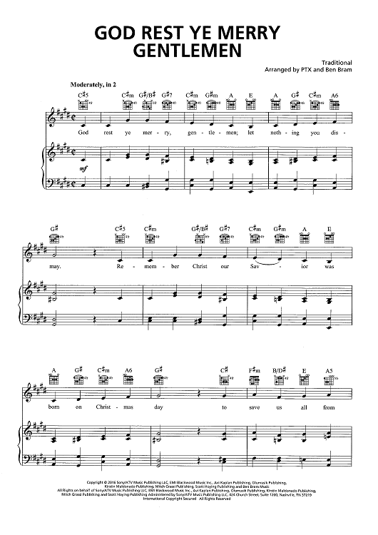 Digital Sheet Music for God Rest Ye Merry Gentlemen by Traditional, Pentatonix, Benjamin Bram scored for Piano/Vocal/Chords; id:465865
