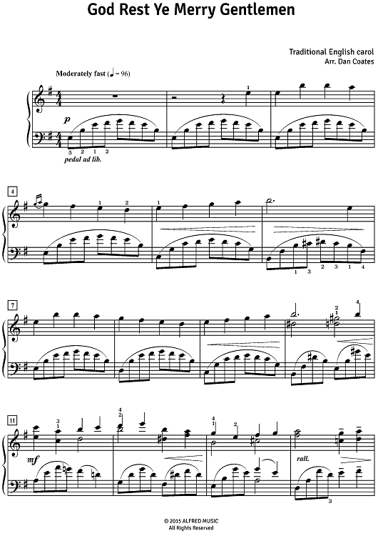 Digital Sheet Music for God Rest Ye Merry Gentlemen by Dan Coates, Traditional English Carol scored for Piano Solo; id:501186