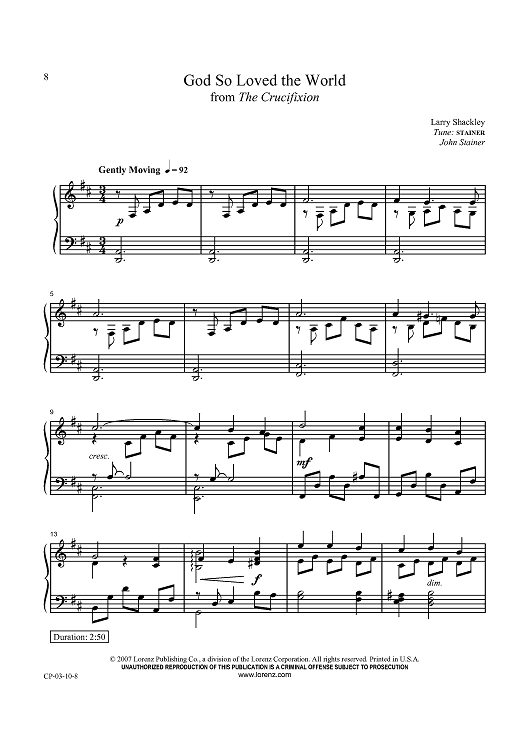 Digital Sheet Music for God So Loved the World by John Stainer, Larry Shackley scored for Piano Solo; id:434312