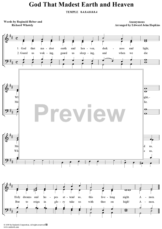 Digital Sheet Music for God That Madest Earth and Heaven by Edward J. Hopkins scored for Four-part Mixed Chorus; id:266347