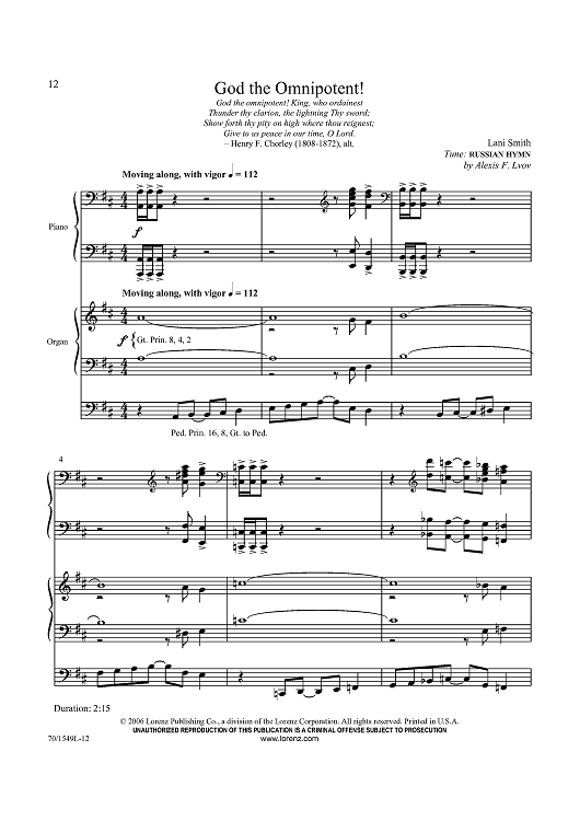 "God the Omnipotent!" Sheet Music by Alexis F. Lvov
