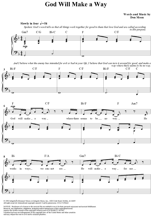 Digital Sheet Music for God Will Make A Way by Don Moen scored for Piano/Vocal/Chords; id:308284