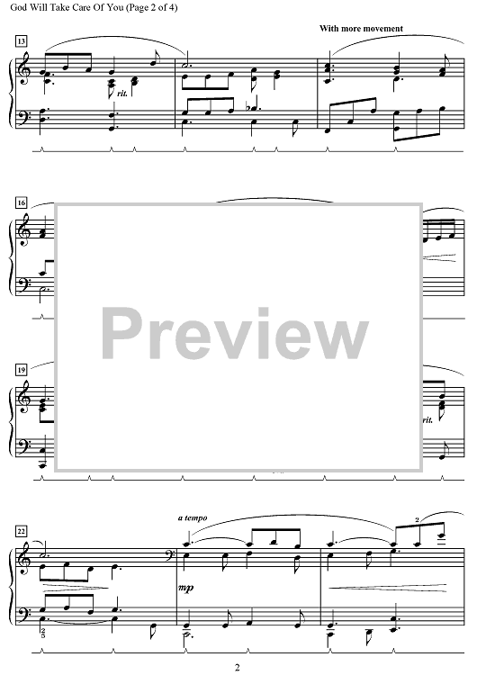 Digital Sheet Music for God Will Take Care of You by Cindy Berry, Walter S. Martin scored for Piano; id:497589