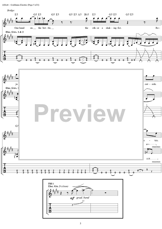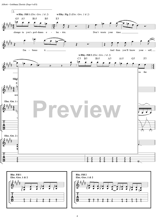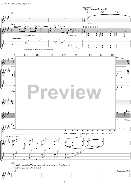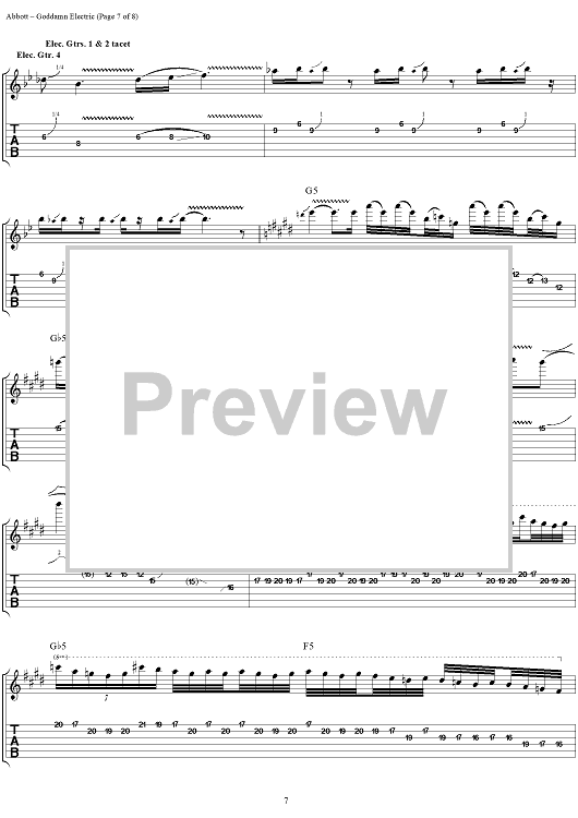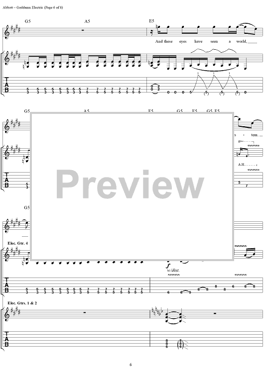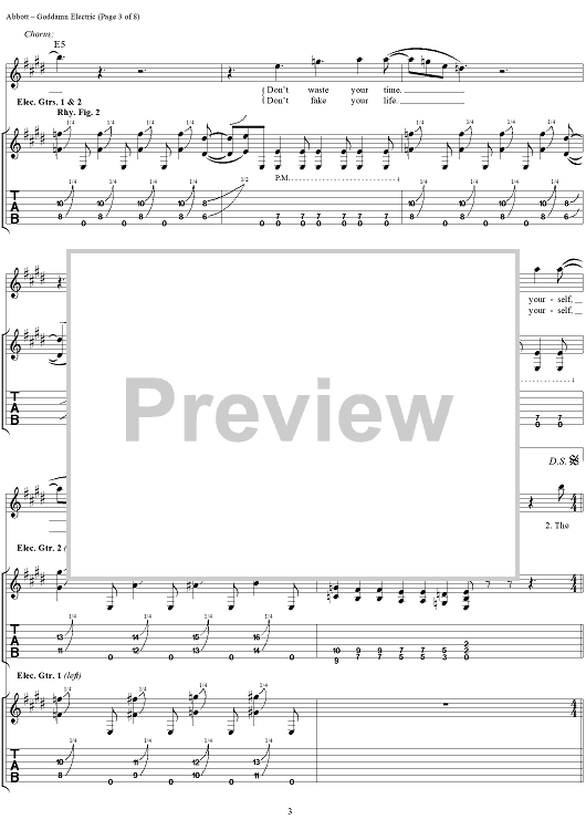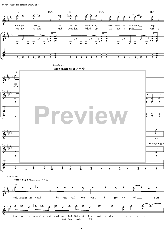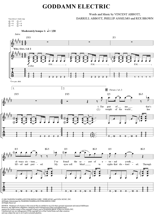 Digital Sheet Music for Goddamn Electric by Rex Brown, Dimebag Darrell, Phil Anselmo, Pantera, Vinnie Paul scored for Guitar Tab/Vocal; id:241336